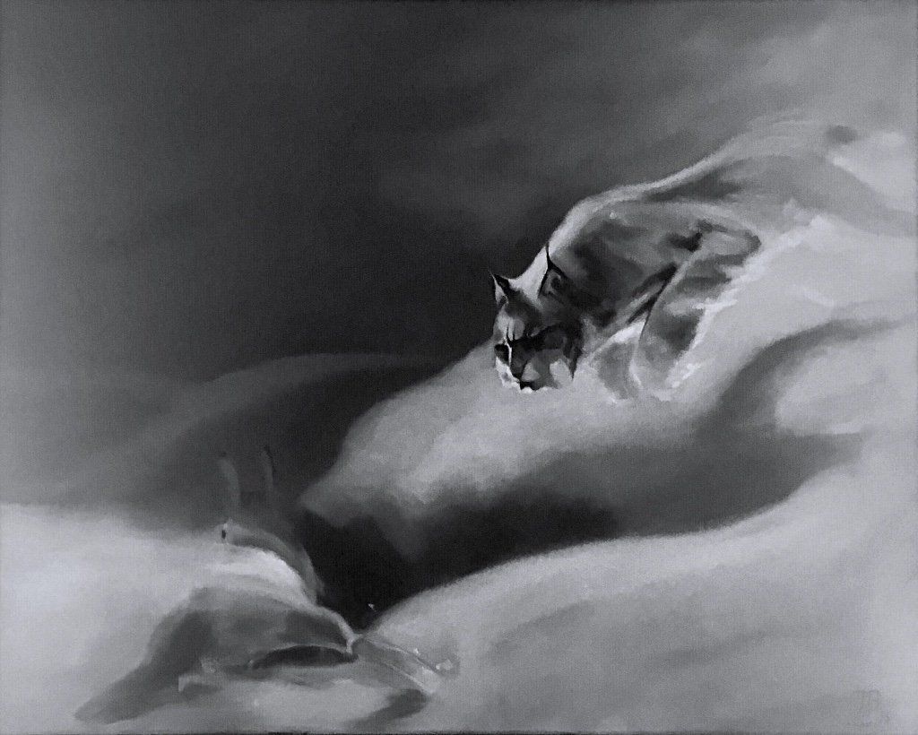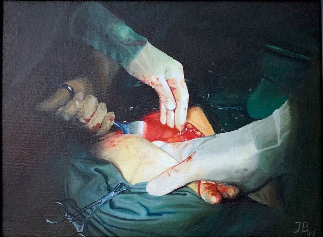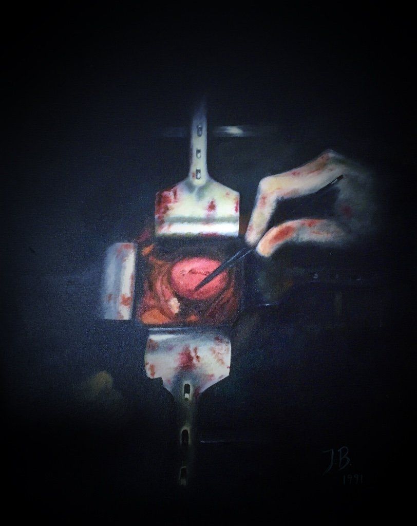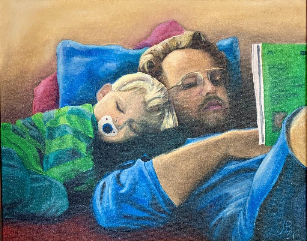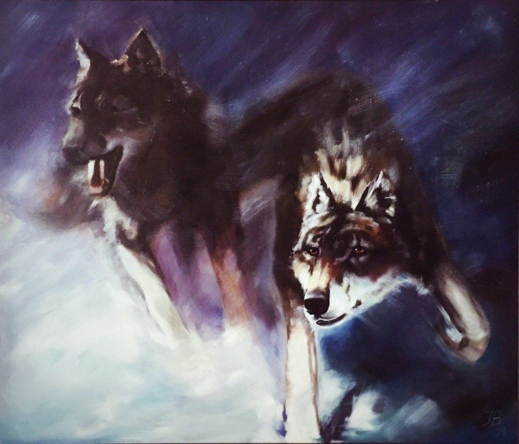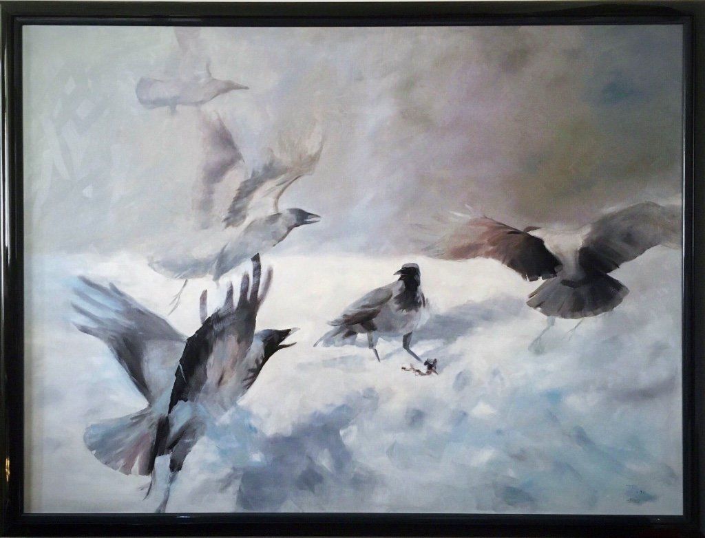 teils Kopien nach Manfred Schatz, einem Jagdmaler der besten Sorte, teils Fotorealismus aus meiner Arbeitswelt und ein Selbstbildnis in jungen Jahren beim Surfen vor Gibraltar sowie meiner Lütten als sie noch klein waren.