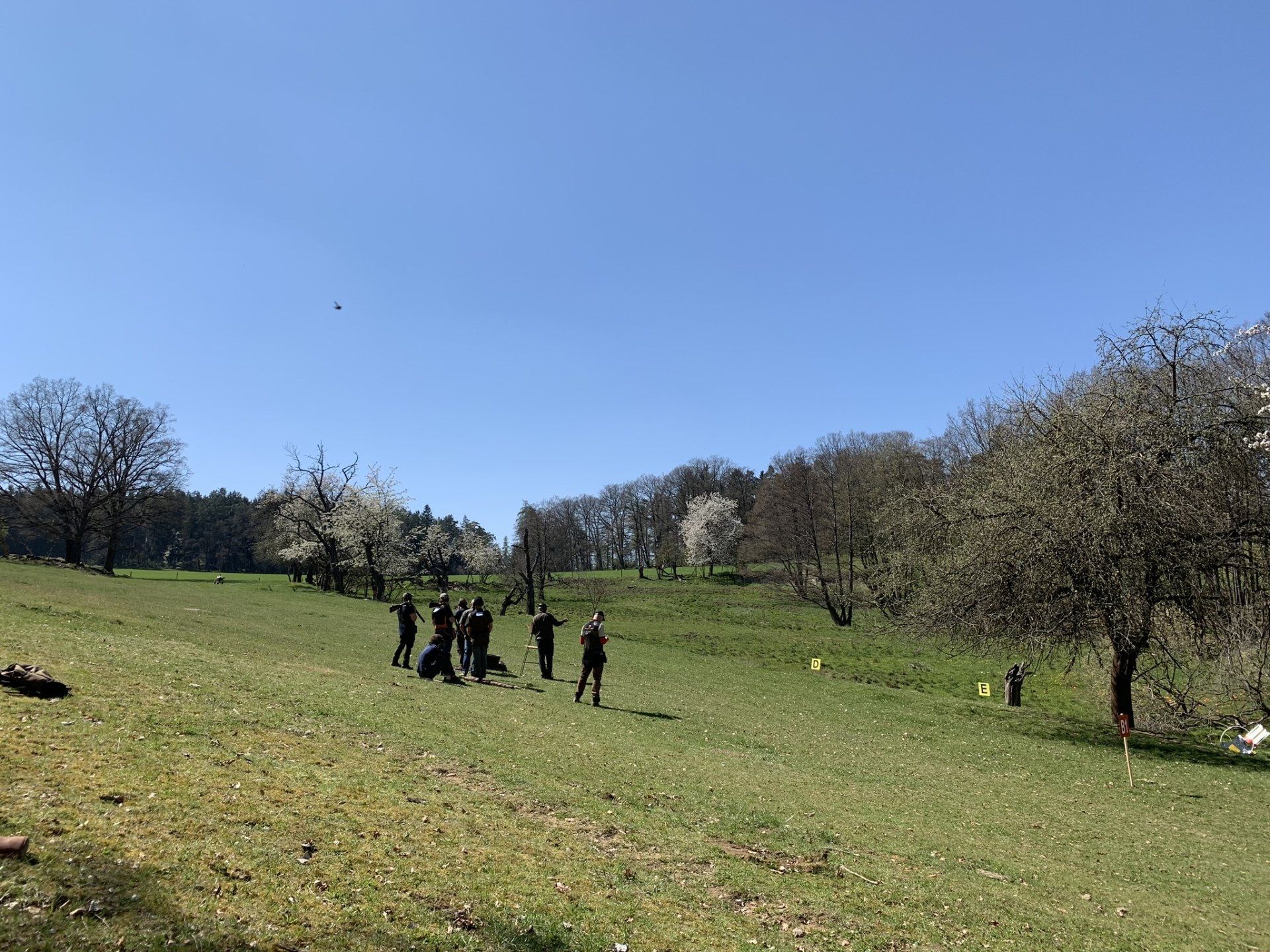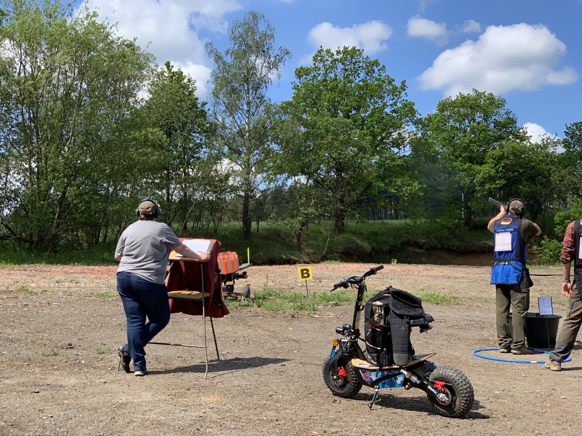 Auf 8 Ständen wurden je 10 Tauben geworfen, davon 4 als Doubletten. So kamen auch C-Tauben in den Genuss paarweise aufzutreten. Um so größer das Hallo wurden beide getroffen. Solch eine Runde wurde zweimal absoviert mit Positionswechsel und Verstellen der Maschinen. Um die 200 zu Komplettieren gab es zum Schluss noch einen Schnelldurchgang über den Parcours mit 5 Tauben je Stand. Viel Beinarbeit war gefordert.