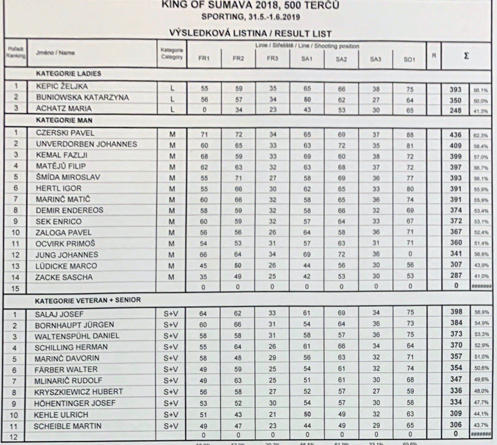 Sedlecko 500 Tauben Parcours 2019
